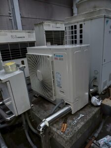 今回の工事では、二方向タイプのビル用マルチエアコンを後継機種へ入れ替えます。